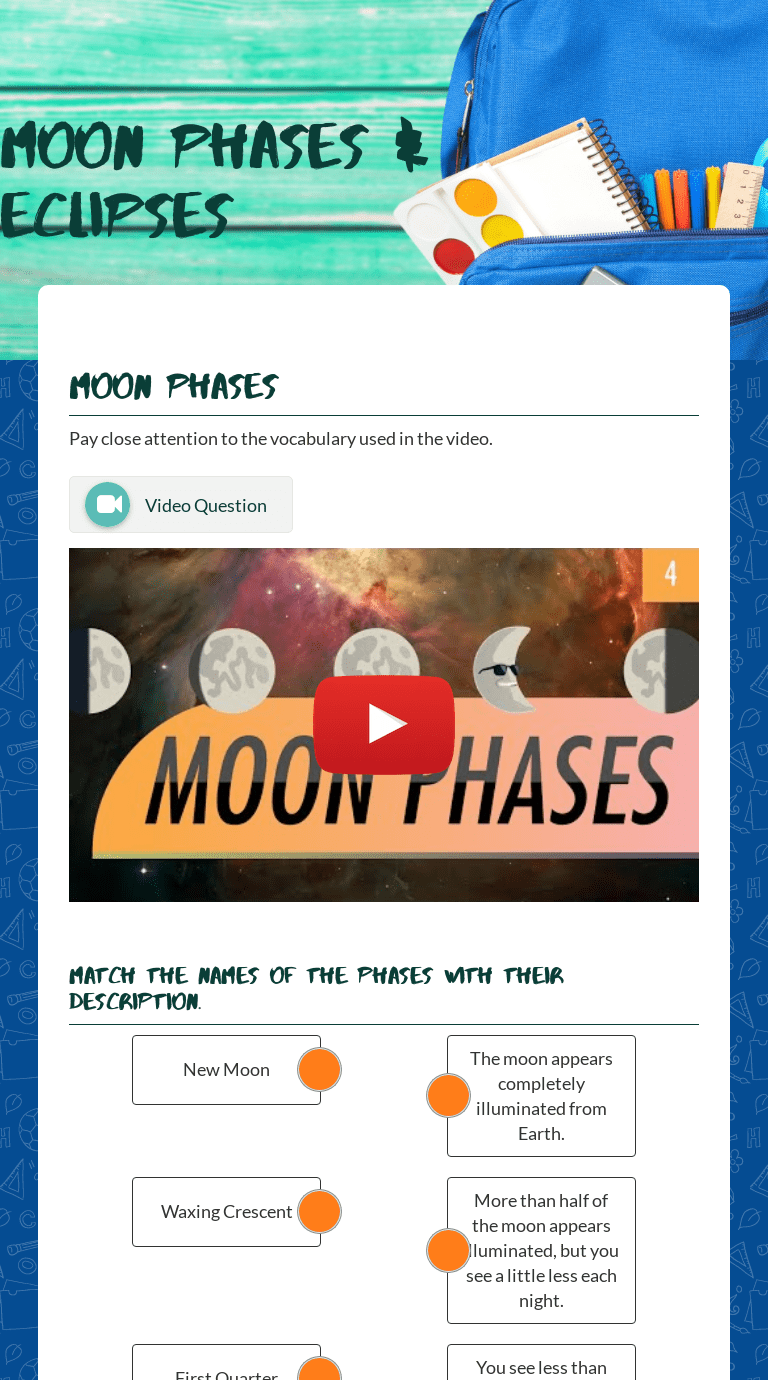 The students will shade in and label the phases of the moon.